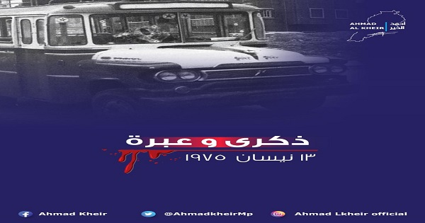 اعتبر النائب أحمد الخير، في ذكرى الحرب الأهلية الخمسين، أن “13 نيسان .. ذكرى وعِبرة”.