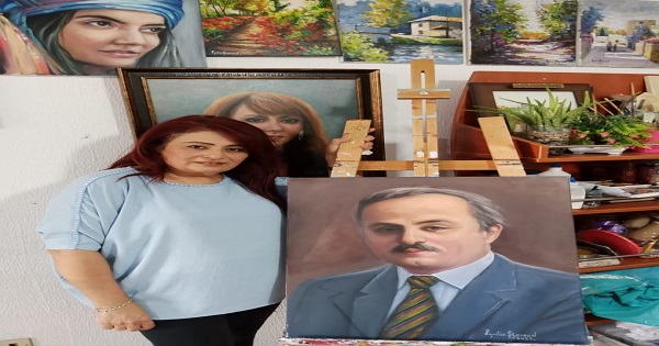 الفنانة التشكيلية ليديا بارود تنسج بريشتها مقامات فكرية وأدبية حيث يرفع التاريخ هامته بالعظماء الكبار