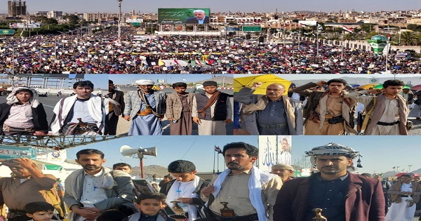 حشود مليونية بالعاصمة صنعاء في مسيرة “مع غزة ولبنان.. صف واحد كالبنيان