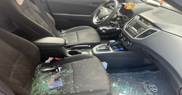 وعمد أحدهم إلى كسر زجاج النافذة الأمامية من الجهة اليمنى ودخل إلى السيارة وكسر مكان التشغيل وإستخرج الشرائط الكهربائية في محاولة منه لاحداث إحتكاك يؤدي إلى إدارة محركها، وقد فشل في ذلك ما دفعه إلى إحداث أضرار كبيرة في داخل السيارة.